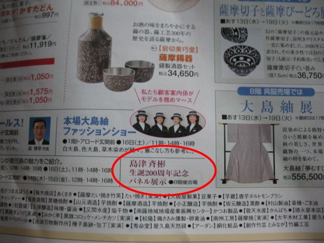 今日行った鹿児島物産展のチラシで気が付いたのですが